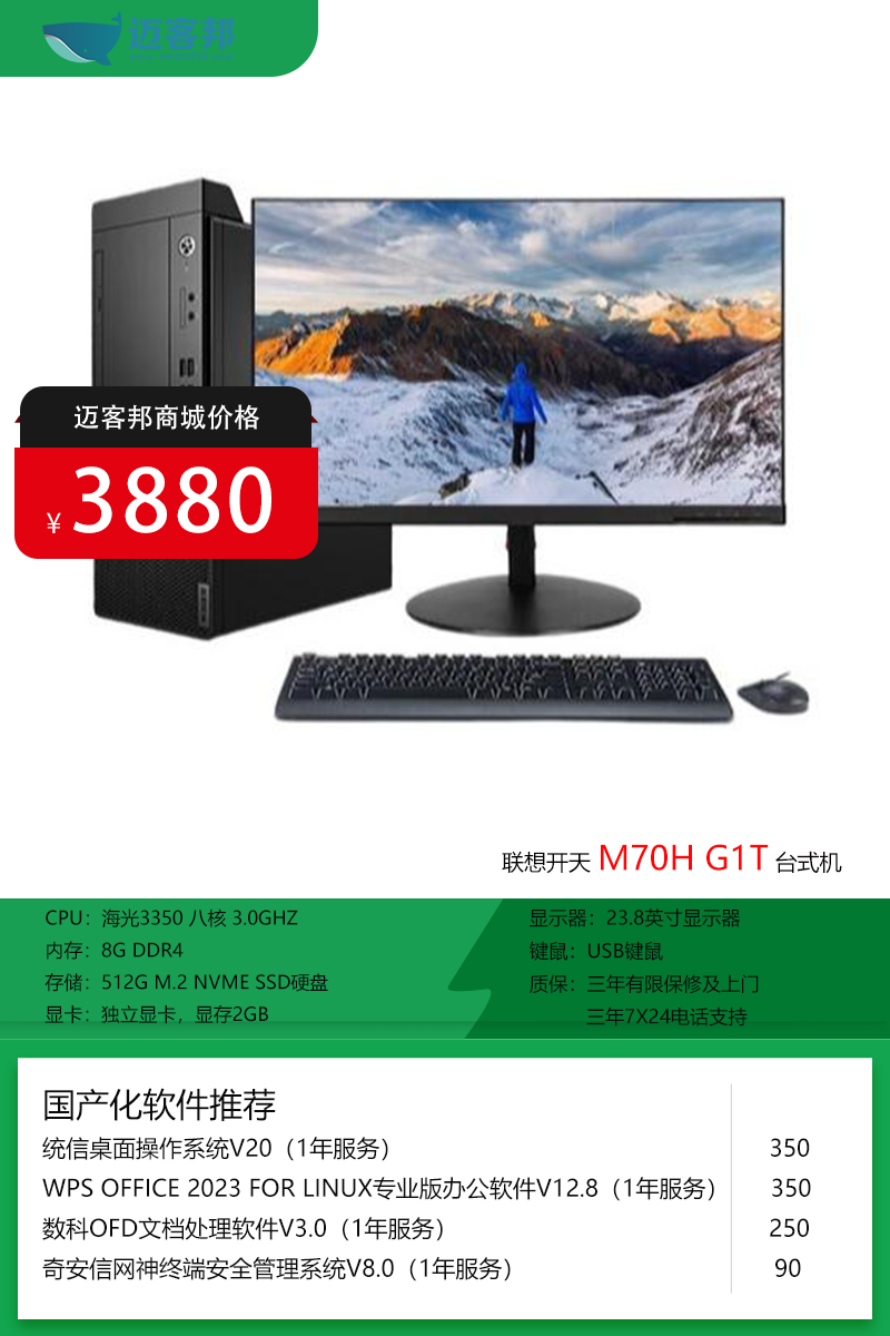 联想开天 塔式商用台式机:国产芯强效办公新标杆