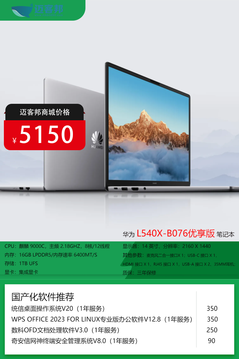 华为擎云L540x笔记本 强劲实力 稳效进阶!