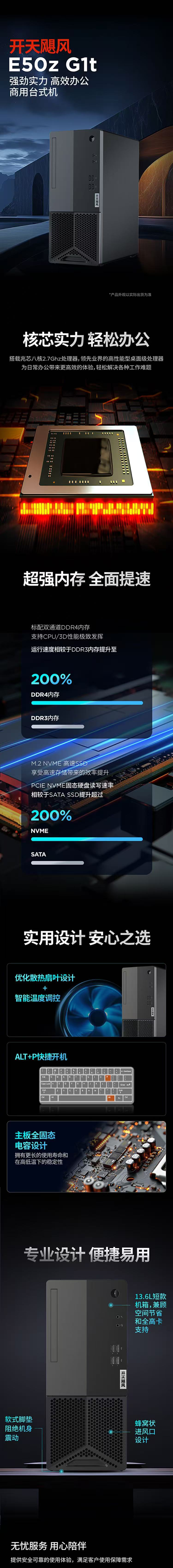联想开天E50z 兆芯KX-U6780A八核 2.7GHz/8GB/512G SSD/集成显卡/+23.8英寸显示器
