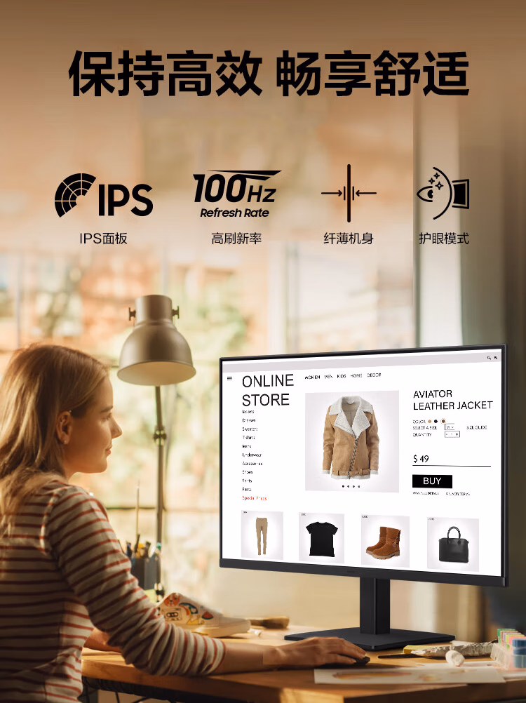 三星 S27D300GAC 1K IPS 护眼办公 直面 1080p高清 设计副屏 电竞游戏 监控壁挂 显示器